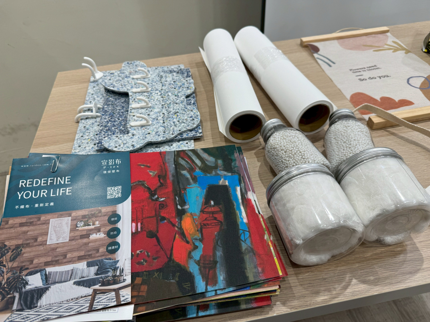 宣影布以其環保特性、優異的印刷品質與高度的應用彈性,在會中引起同仁們興趣。勝陽國際團隊透過實例展示,說明此材料如何運用於 接待中心牆面印刷、飯店走道佈置、大型展覽廣告牆面 等多種空間,不僅美觀、質感佳,更能有效縮短施工時間、降低更換與拆卸的成本。