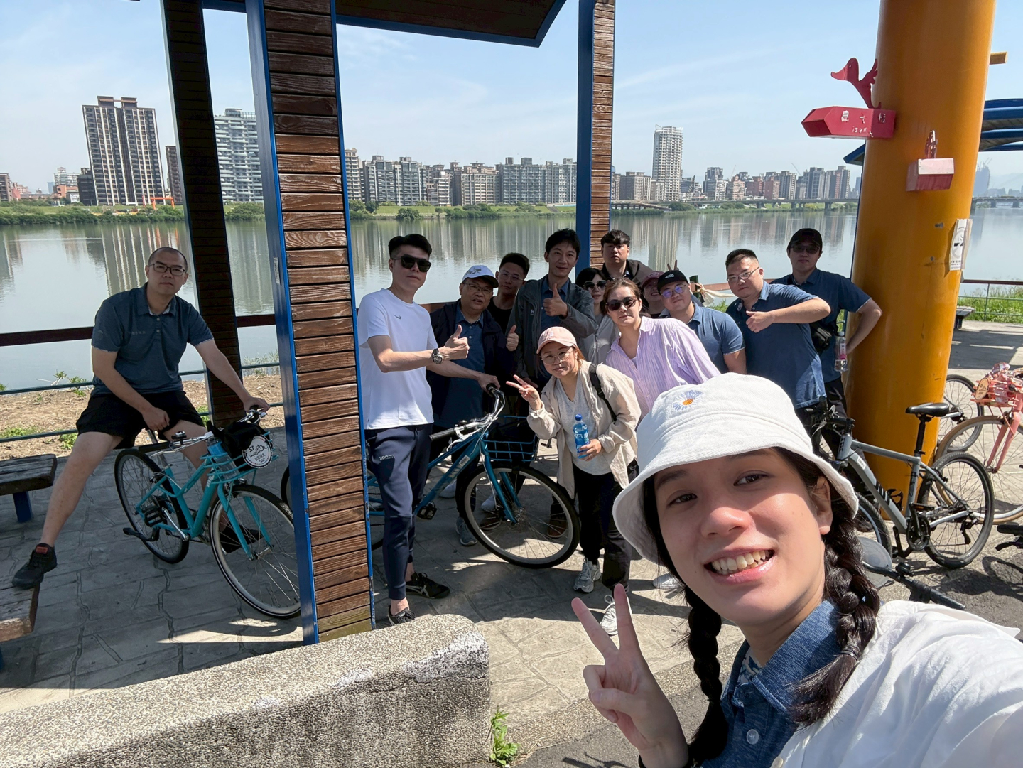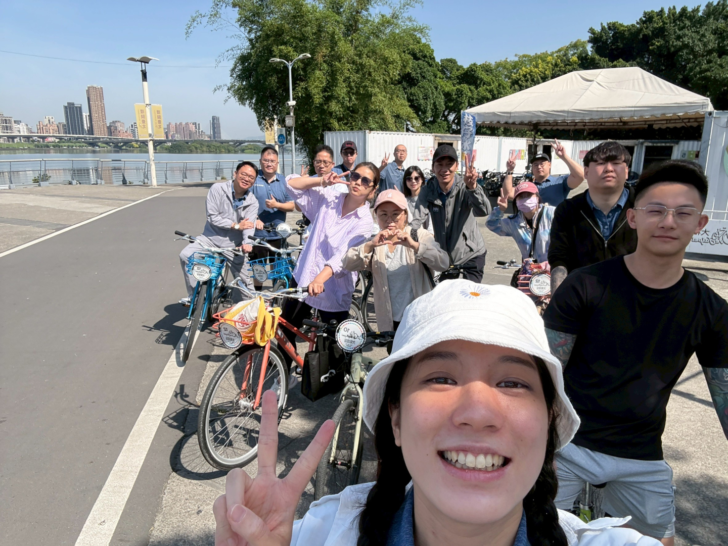 當天風和日麗,陽光燦爛,團隊在豔陽之下迎風前行。騎乘過程中,一邊踩著節奏、一邊欣賞沿途河岸風景,城市與自然交錯的景致,讓人暫時放下工作的緊湊步調,回到最純粹的身心狀態。