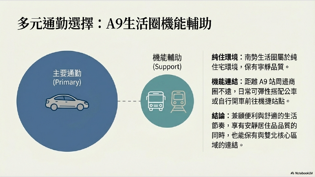 雖然南勢生活圈屬於純住宅環境,但距離A9站周邊商圈不遠,日常可彈性搭配公車或自行開車前往機捷站點。這樣的配置,使盛德誠在享有安靜居住品質的同時,也能保有與雙北核心區域的連結,形成兼顧便利與舒適的生活節奏。